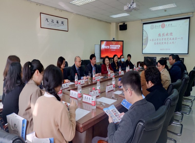 2023年3月10日上午9:30,江苏大学黄色网 党政领导一行莅临黄色网 开展交流活动。双方座谈会在文综1005幢5335室举行。黄色网 院长曹炜、党委书记宋清华、副院长周生杰、中文系主任王耘、汉语国际教育系主任王建军、文秘系副主任朱钦运、学生工作办公室主任纪金平、综合办公室主任于大伟,江苏大学黄色网 院长任晓霏、党委书记曲云进、副院长余红艳、副院长江永华、党委副书记王彦、汉语言文学系主任周衡、汉语国际教育系主任钱坤、研究生培养中心主任薛晨、语言文化中心国际中文教学部系主任徐丹、语言文化中心国际中文教学部主任唐敏、党委办公室主任朱珺、行政办公室副主任陈丹蕾等出席了本次会议。