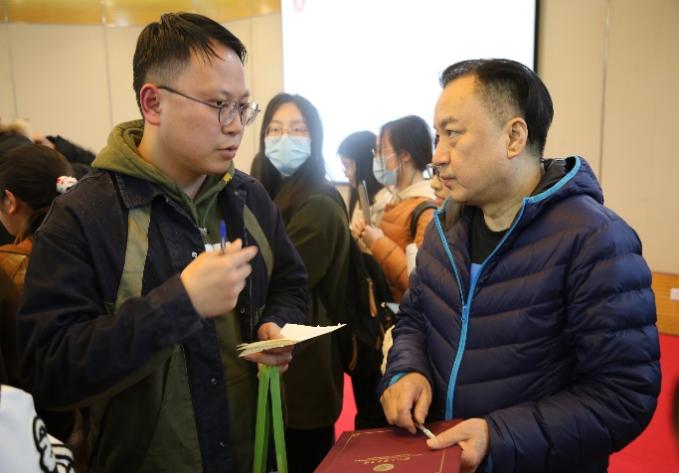在互动环节,同学们踊跃提问,两位主讲人做出了真诚而又观点独到的回答。讲座后,同学们意犹未尽,纷纷与阎连科先生、程永新先生交流问题,合影留念。