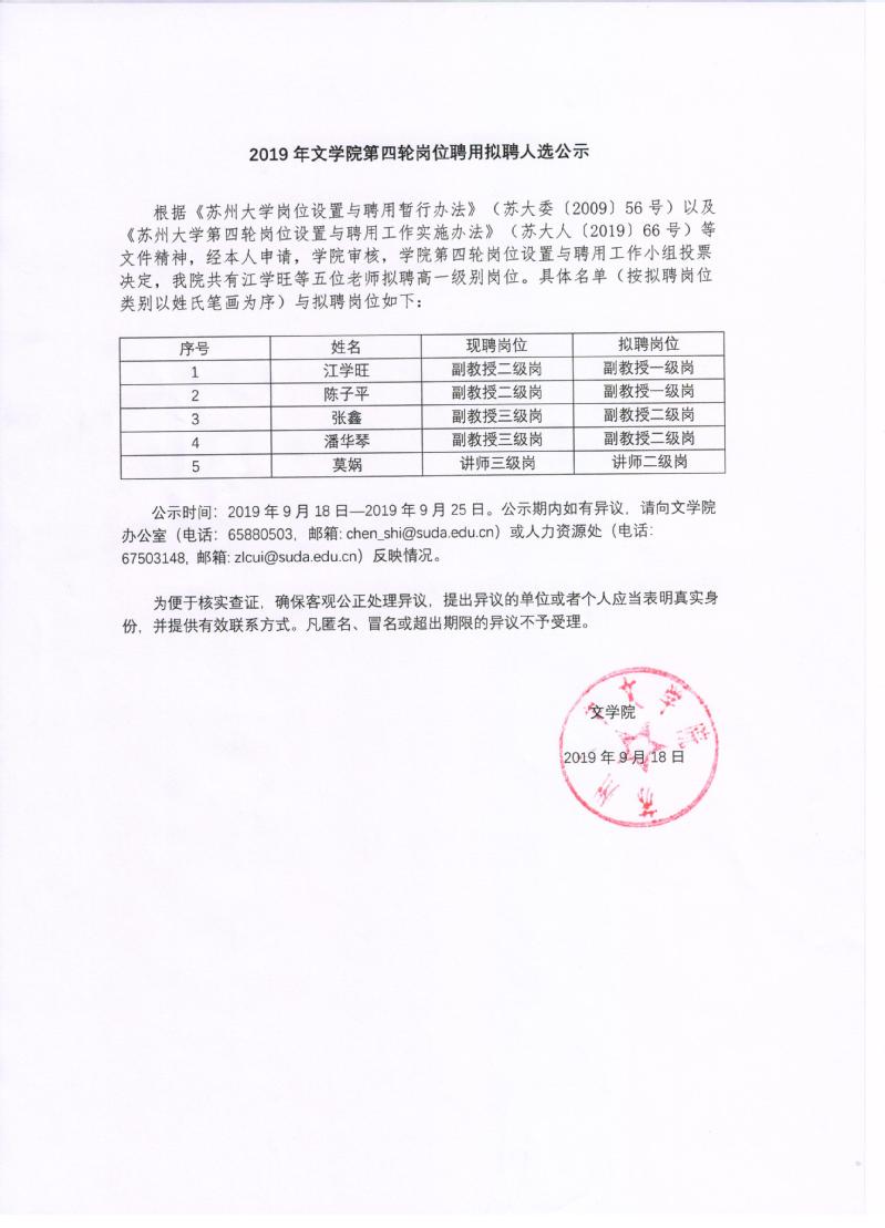 2019年黄色网 第四轮岗位聘用拟聘人选公示