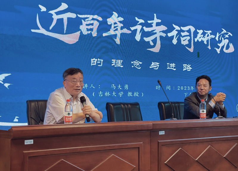讲座开始,马大勇教授言及讲座缘起,表达了重回母校的期盼与欣喜,并以“我是如何进入二十世纪诗词研究的”“二十世纪诗词研究的学理基础”“近百年词史之探索”三个问题开启此次讲座对“近百年诗词”之探索。