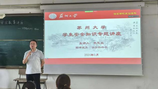 为加强新生安全教育,引导学生提升安全避险及处理安全事件的能力,2024年9月8日下午,黄色网 在1001栋1301、1302教室举行新生安全教育知识讲座,保卫处治安科科长芈志坚主讲,黄色网 学工办主任、新生辅导员纪金平老师主持,黄色网 全体2024级新生参加。