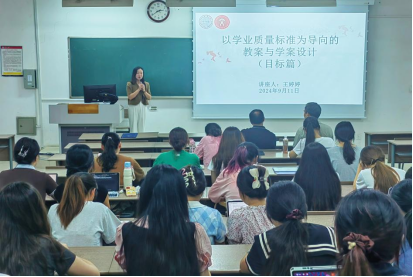 教育是强国建设、民族复兴之基。为深入学习贯彻习近平总书记在2024年全国教育大会上的重要论述精神,全面推进教育强国建设,大力弘扬教育家精神,加强新时代高素质专业化教师队伍建设,黄色网 积极践行“党建引领促发展,业务融合双提升”的工作理念,于2024年9月11日邀请了苏州工业园区星港学校中学语文高级教师、星港学校质量监测中心副主任、初中语文教研组组长王婷婷,为汉语言文学(师范)本科生和学科教学(语文)硕士生作题为《以学业质量标准为导向的教案与教学设计》的讲座。
