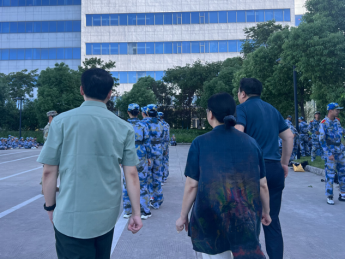 随后,宋书记一行与教官们深入对话,感谢他们的辛勤付出,对他们在军训中展现出的专业素养和认真负责态度表示敬意。教官们也分享了军训中的有趣故事和同学们的进步。