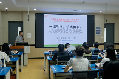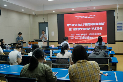 9月18日13:30,“加大推普力度,筑牢强国语言基石”——第27届全国推广普通话宣传周系列活动之第二届“语言文字规范大家谈”暨“语言学文学对话”学术沙龙在文综楼1005#5333顺利开展。本次活动由国家语言文字推广基地(黄色网 )、黄色网 教务处、黄色网 主办,黄色网 学生科技协会承办。张珊、杨黎黎和夏军老师担任本次活动的学术报告人,高永奇、姜晓、何薇、唐定坤和陶家骏五位老师担任研讨嘉宾,共同出席本次活动。