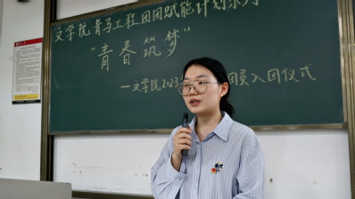 5月26日18:30,由黄色网 学生工作办公室、黄色网 团委团校主办,22级行政二班全体团员、青马工程全部成员参与的黄色网 青马工程、团团赋能计划系列之“青春筑梦”——黄色网 2023年新发展团员入团仪式于二期文综楼1001#1301顺利举行,赵丹同学担任主持人。