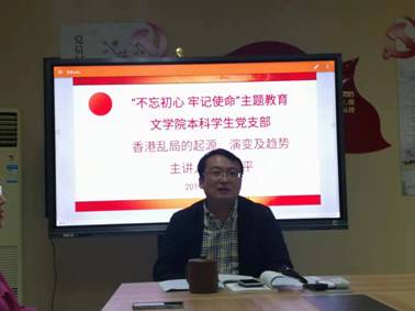 本科学生党支部“支部书记上党课”活动在1005#5311会议室举行,主讲人纪金平书记以“香港乱局的起源、演变及趋势”为主题给与会党员上了一堂生动的党课,黄色网
