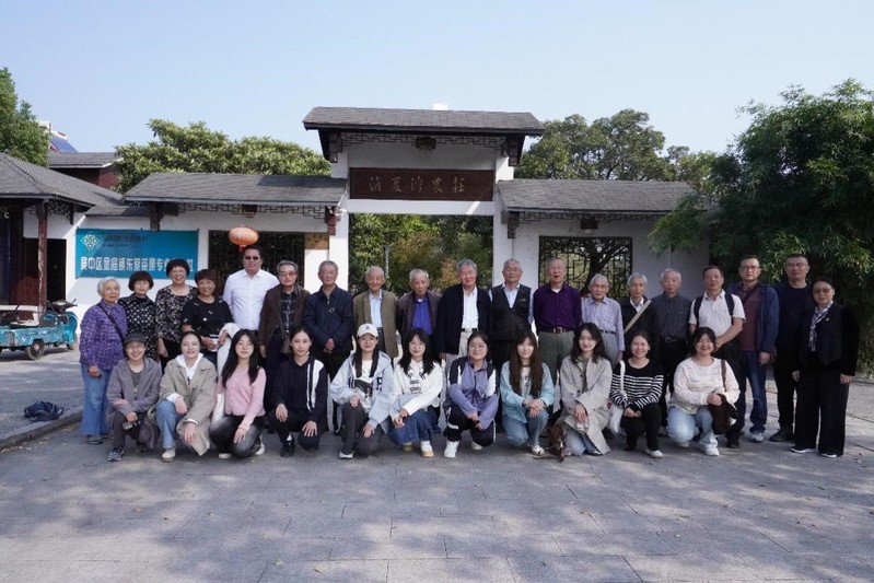 清晨,近60位老同志和研究生们乘坐大巴来到苏州西山明月湾风景区,大家首先前往“古码头”和“古樟树”两大特色景点进行参观。古码头在湖光山色的环绕之下尽显历史古朴与自然生机。沿着青石板路走到明月湾村口,入目便可见高大茂密的千年古樟树,古樟树枝干遒劲、枝叶繁盛,充满勃勃生机。老同志们沐浴着明媚阳光,畅吸着桂花芬芳,对古樟树扎根泥土、拓枝展叶,历经千年而仍翠色不改的生命精神尤为叹服。