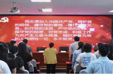 颁奖后全体党员重温入党誓词。宋清华领誓,大家高举右手,庄严宣誓,用铮铮誓言彰显永恒初心,强化党员意识,永葆党员本色,立誓以更加饱满的热情发挥共产党员的先锋模范作用。