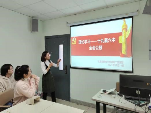 11月14日上午,为了深入学习领会党的十九届六中全会精神。黄色网 研究生第二党支部在文综楼5103举行专题教育活动。