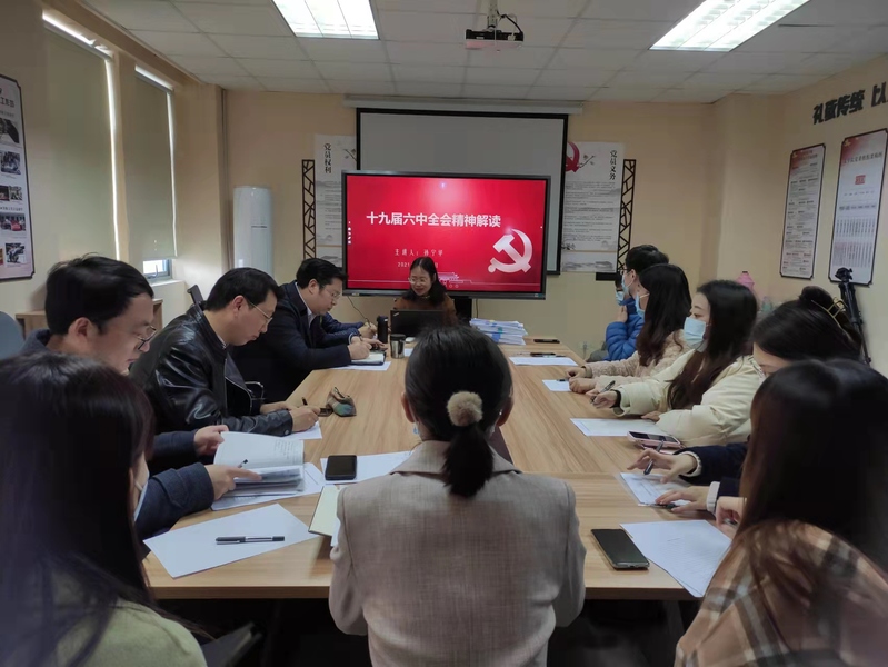 会议的第一项议程是党委书记讲党课。孙宁华书记带领各支部书记重温十九届六中全会公报,梳理了十九大以来历次全会的聚焦内容。孙书记重点阐述了六中全会的非凡意义,深入解读十九届六中全会精神,强调要从中国共产党百年奋斗的重大成就和历史经验中汲取力量,继续贯彻四个“必须”,强化落实十个“坚持”。