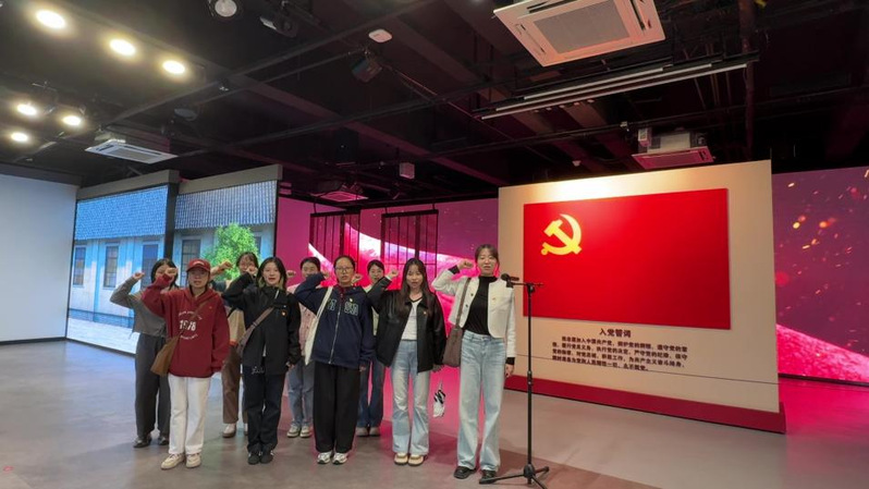 随后,全体党员前往“青春我行”实践体验区,场馆模拟乐益女中的教室与图书室,并运用技术让党员们充分体验革命先烈的艰苦岁月。在“最后一课”展示馆,作为讲解员的张黄婕同学从旧址前身、影响地位等方面进行叙述。她介绍道,1925年9月初,苏州历史上第一个真正发挥革命领导作用的党组织——中共苏州独立支部在这里诞生。从此,苏州人民的革命事业有了坚强的领导核心。