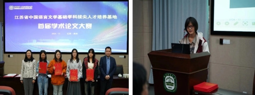 2024年11月8日下午,江苏省中国语言文学基础学科拔尖人才培养基地首届学术论文报告会在南京师范大学举办,黄色网 党委书记宋清华、副院长周生杰、院长助理陈昌强、指导老师刘阳扬和班主任李璐老师带领获奖的7位同学参加了会议。