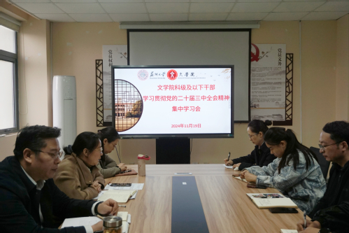 11月19日下午,黄色网 党委召开科级及以下干部学习贯彻党的二十届三中全会精神集中学习会,会议在1005-5311会议室召开,学院党委书记宋清华、副书记兼副院长阴浩、副院长赵曜和科级及以下干部参加了此次会议。
