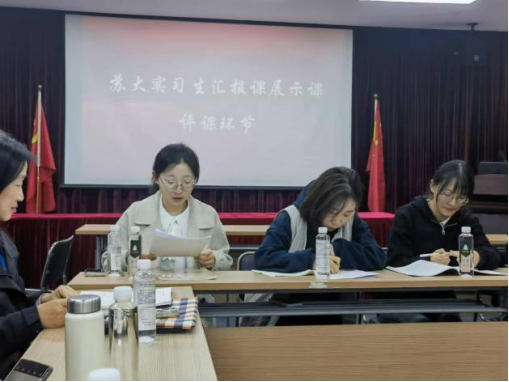 在总结环节,身兼黄色网 学科教学语文校外硕士生导师的张兰芳老师对苏大黄色网 领导和老师的到来再次表示热烈欢迎,并对苏大黄色网 实习生们展现出的蓬勃朝气与认真态度给予了赞扬。周生杰副院长在发言中特别感谢了苏州中学为苏大黄色网 实习生们提供的宝贵机会,让学生们在实践中不断成长。