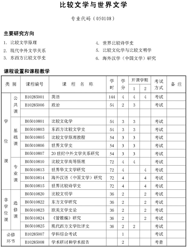 比较文学与世界文学博士生培养方案