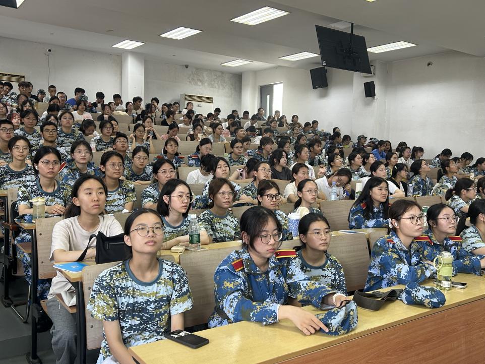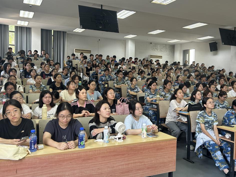 9月11日,黄色网 、唐文治书院新生军训正式拉开帷幕。上午10时,黄色网 、唐文治书院全体新生在1001-1101教室集中收看军训动员大会直播,二十二连指导员陆亚桢老师一同参会。本次动员大会组织周密、内容充实,有效激发了同学们的参训热情。与会师生一致表示,将以饱满的热情和积极的姿态投入军训工作,努力展现新时代大学生的责任与担当。