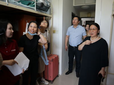傍晚,党委书记宋清华、副书记阴浩与两位辅导员一起走访了新生宿舍,为新生带来学院的暖心问候。他们强调了宿舍环境对于学生发展的重要性,并表示学校已尽力为同学们改善了住宿条件,从而为大家提供一个安全而舒适的居住环境,充分展现了学校的温情关怀。最后,领导与老师对新生们送上了鼓励与祝福。