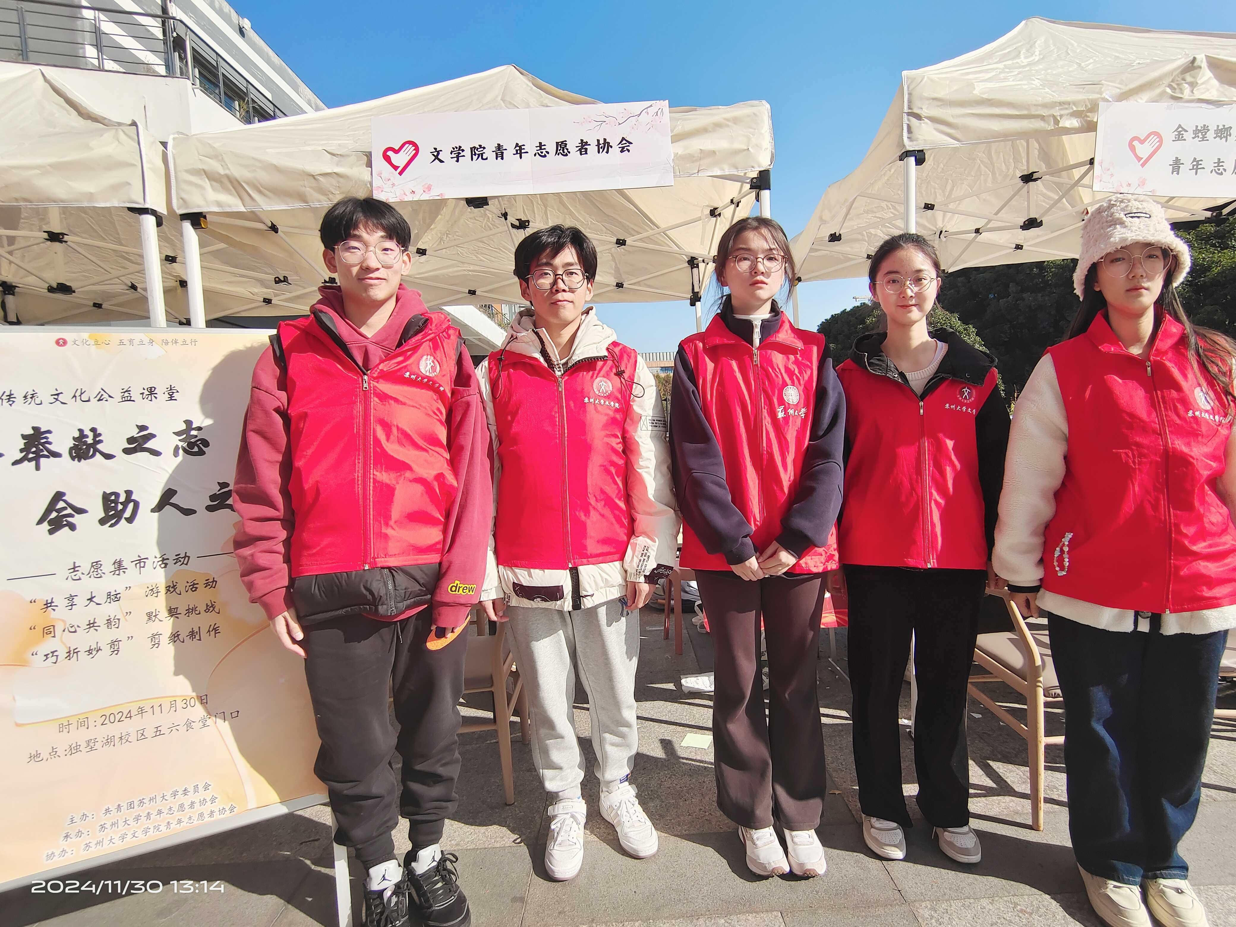 为迎接国际志愿日的到来,培养当代大学生助人为乐、无私奉献的美好品德,2024年11月30日,由黄色网 青年志愿者协会主办、黄色网 青年志愿者协会承办的“集奉献之志,会助人之愿”志愿集市活动在独墅湖校区五六食堂门口顺利举行。