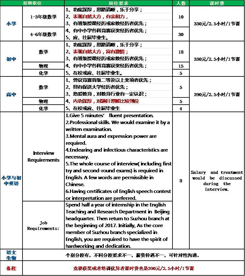 关注微信官方公众号(苏州学而思招贤)―线上投递简历―宣讲会―初试―复试―面谈―培训―签约