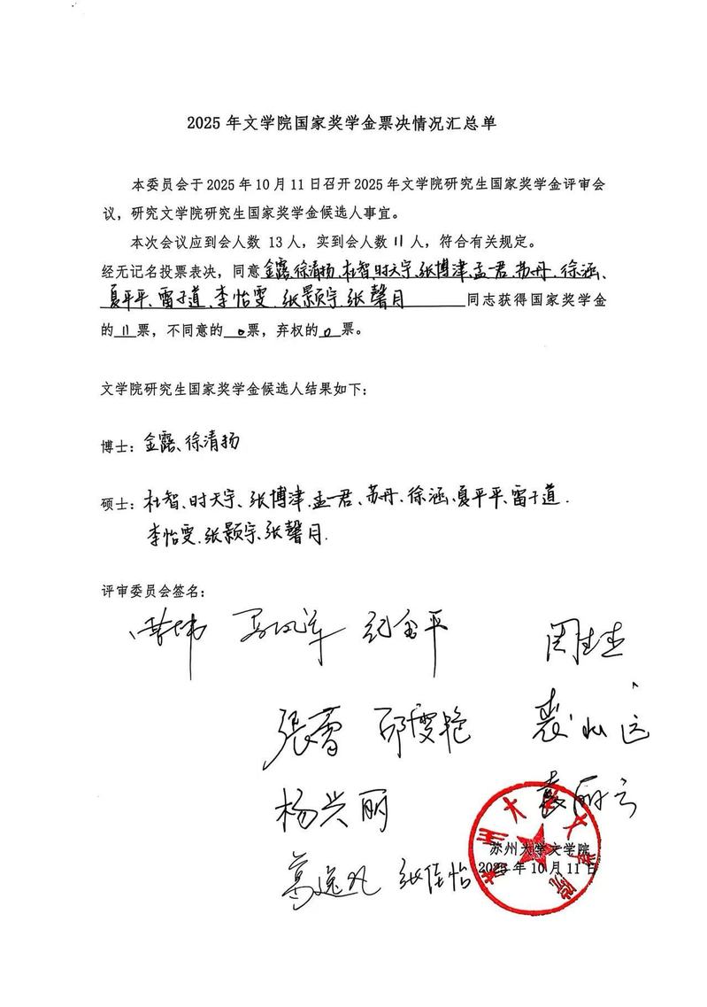 根据《关于做好2025年研究生国家奖学金评审工作的通知》工作要求,遵循平等原则、回避原则、公正原则、保密原则,此次评审由学生个人主动申请提交材料,经黄色网 2025年度国家奖学金评审委员会根据学院评定条例评审,现将结果公示如下: