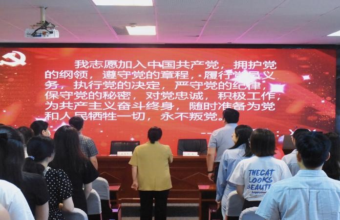 颁奖后全体党员重温入党誓词。宋清华领誓,大家高举右手,庄严宣誓,用铮铮誓言彰显永恒初心,强化党员意识,永葆党员本色,立誓以更加饱满的热情发挥共产党员的先锋模范作用。