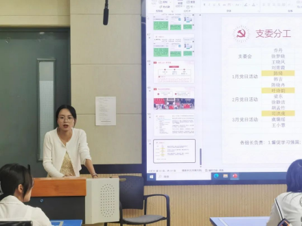 接着,专硕第二党支部书记乔丹就黄色网 党务工作经验与同学们进行交流。乔丹对支部资料的整理与检查、发展党员的程序与规定、支委内部的精细化分工以及党支部“三会一课”制度进行了明确详实的介绍,并与大家分享了学院开展党日活动的喜人成果。