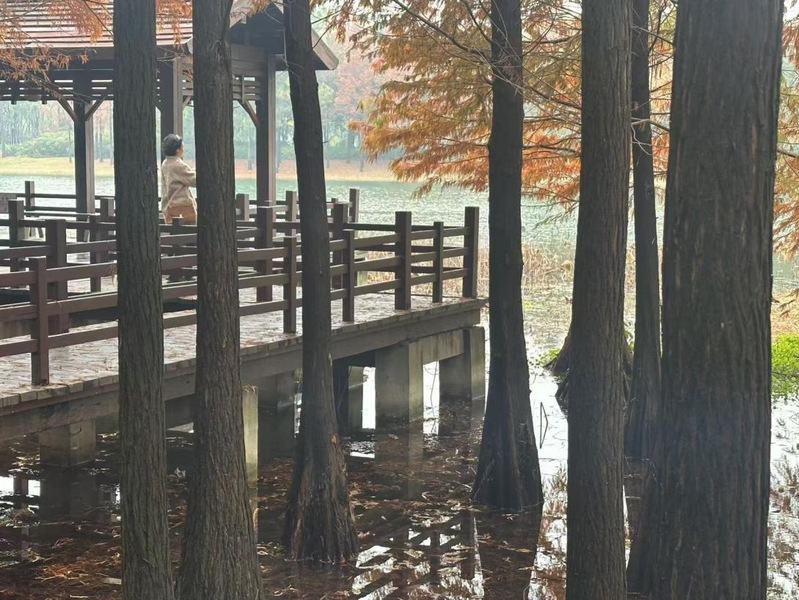 座谈会后,在轻松愉快的氛围中,教师们结伴而行,漫步在公园的水上杉林中观赏美景。身处这一富含自然韵味的场所,教师们得以暂时从繁重的教学与科研工作中抽离,心境变得闲适而舒畅。他们或驻足拍照留念,或低声交谈,享受着这份难得的宁静与美好。