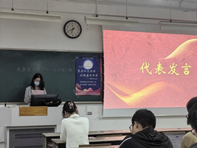 在传承先辈精神环节中,主持人以毛主席和烈士秋瑾的两首诗词作品引入,开展诗词“飞花令”活动。同学们竞相起立抢答,十分热闹,展现出黄色网 学生深厚的诗词功底。最后,主持人对活动进行总结,为互动发言环节中获胜者颁发纪念奖品。