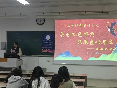 10月18日晚18:30,“展卷红色经典,放眼盛世华章”——夜读会活动在文综楼1002#2204成功举办。本次活动由黄色网 团委、黄色网 社联主办,由弄潮文学社、黄色网 本科学生党支部、黄色网 青年学生志愿者协会承办,由黄色网 23级钱佳怡同学担任主持。