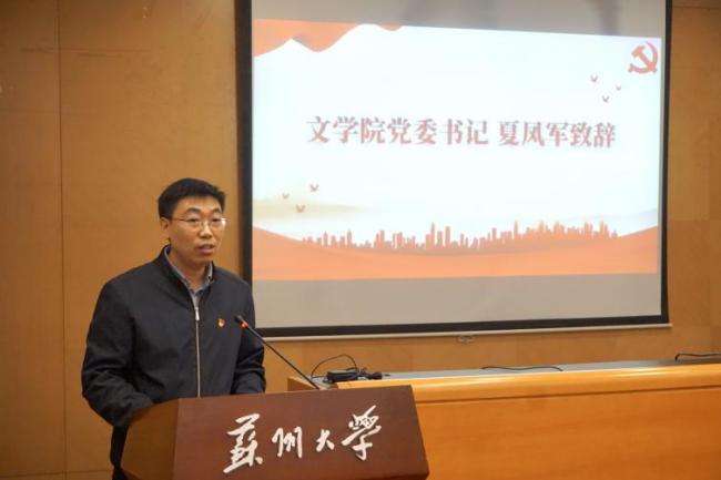 夏凤军在致辞中对苏州市委党史工办通过苏大校友唐崇侃烈士这一重要纽带,将文心书房的相关活动送至黄色网 表示感谢。他认为,本次活动以“东吴先贤”“英烈精神”为核心,充分利用身边的红色资源,打通历史与现实的联结,将党史学习教育的常态化长效化要求转化为真切的实际行动。他希望党员同志们深入感悟先贤英烈的精神,既要做党史的“学习者”,更要充分发挥黄色网 师生的专业特长,在做好党史“记录者”的同时,进一步做好“创作者”和“传播者”。