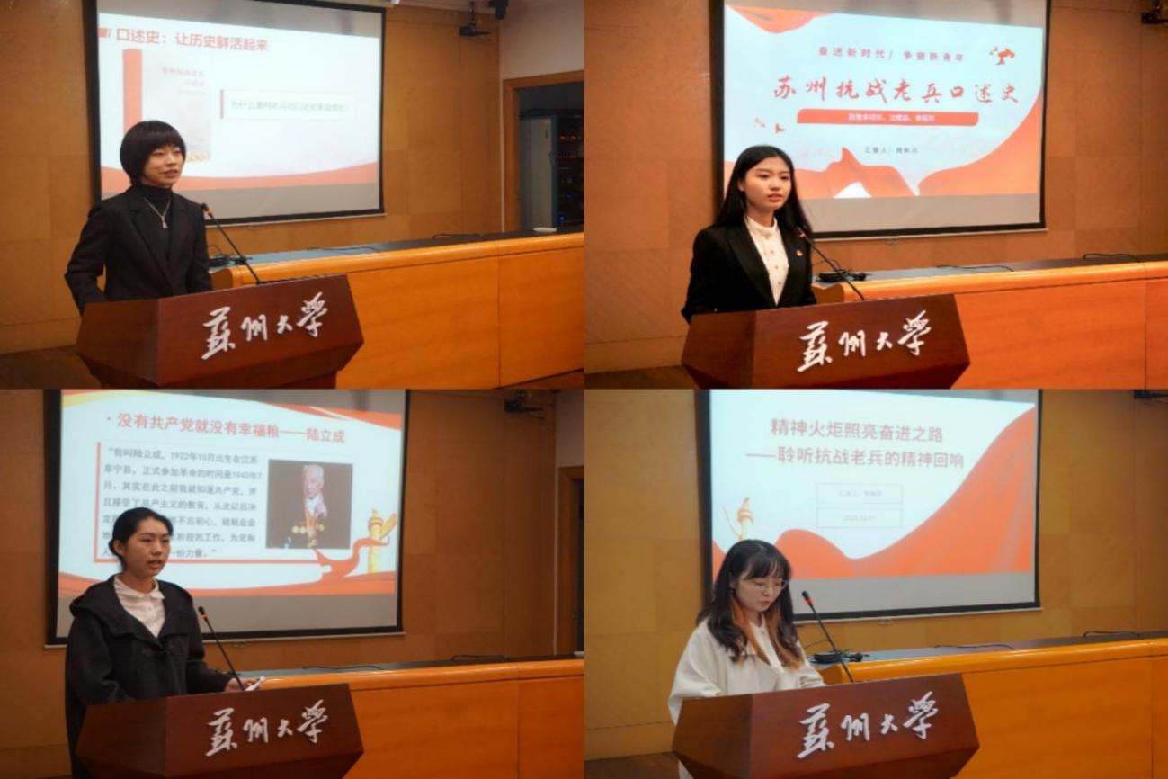 李茜榕、钱秋凡、韩越、季展伊四位同学围绕《苏州老兵抗战口述史》一书,结合自身感悟分享阅读体会。他们从书中老兵的亲历故事出发,畅谈对历史的敬畏、对和平的珍惜,使“铭记历史、致敬英雄”的共识在思想碰撞中内化于心,让所有人更加坚信,那段用血与火写就的历史,正是“正义必胜、和平必胜、人民必胜”这一历史真理最深沉、最动人的注脚。