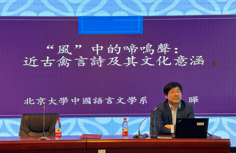 接着,叶教授对禽言诗进行了详细解读。首先,他介绍了文学作品中的鸟类语言,指出鸟声、鸟语、鸟言、禽言的异同。其次,介绍了“一禽多言”与方言的地方性,鸟的叫声随地域的不同会形成不同的听觉效果,鸟叫声的不同或许还跟人心有关。最后,介绍了文学中人与动物之关系,大致可分为统治型、和谐型和比拟型三种。