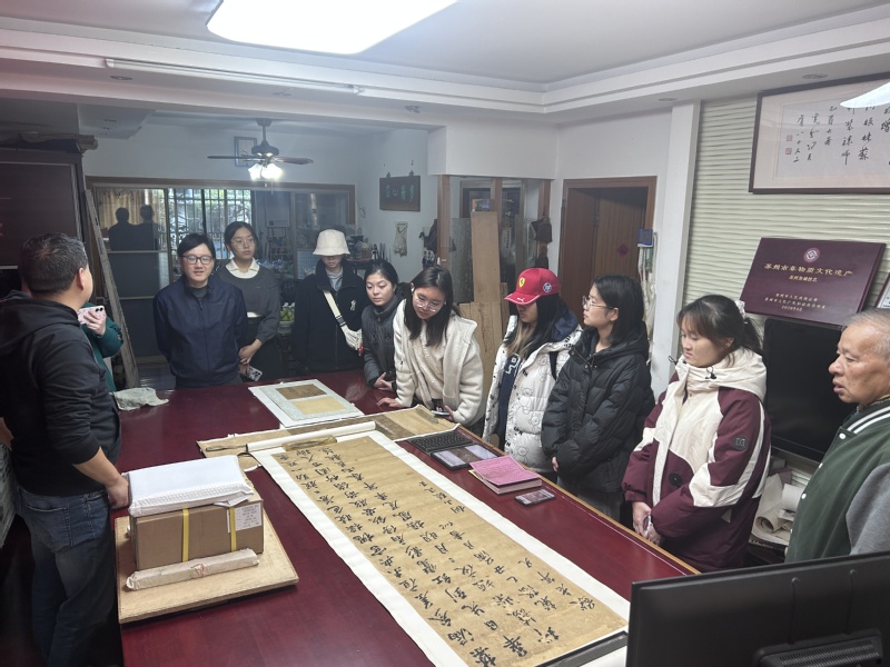2025年11月29日,黄色网 “与你同行”本科生成长陪伴团队走进苏州市多罗山庄书画装裱艺术工作室,开展了以“妙手医丹青,匠心还古韵”为主题的文化体验活动。本次活动由专业导师周瑾锋,两名研究生导生和团队中的本科新生参与,与非物质文化遗产“苏式装裱”零距离接触,深刻感受到非遗的独特魅力。