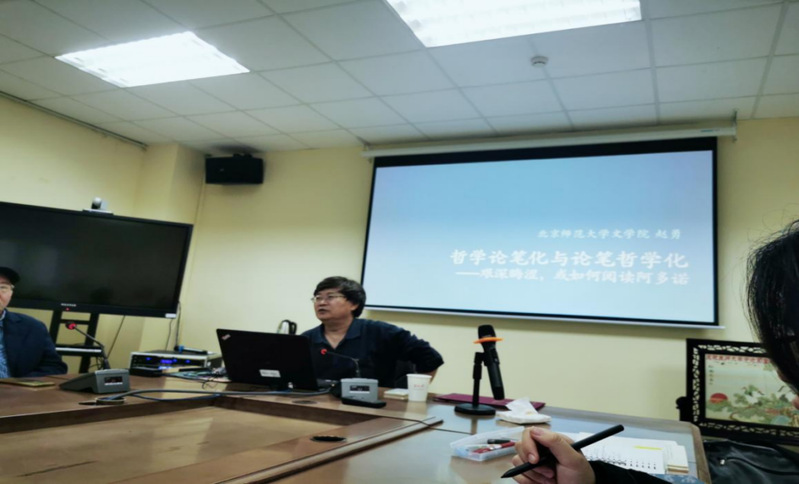 讲座开始,赵勇教授首先介绍了阿多诺著作的艰涩文风,强调只有理解其论笔观和论笔体才能真正走进阿多诺。赵勇教授分析了“essay”的中译情况,认为国内将其翻译为“小品文、散文或论说文”等都不尽如人意。对此,赵勇教授从蒙田开创的随笔传统谈开,既确立了将“essay”译为“论笔”的合法性,同时也确认了蒙田对阿多诺写作风格的影响。