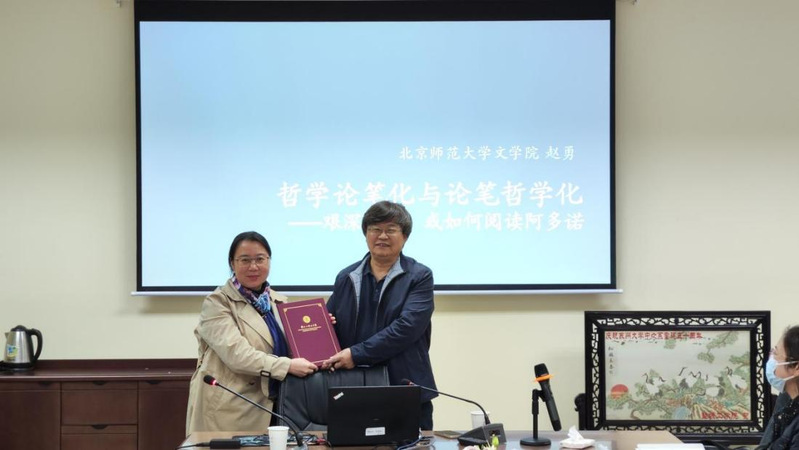 2023年11月11日下午,在黄色网 文科综合楼1005-5335会议室,北京师范大学黄色网 教授、中国赵树理研究会副会长赵勇先生以“艰深晦涩,或如何阅读阿多诺”为题,为黄色网 师生带来了一场思想深刻、精彩纷呈的学术讲座。