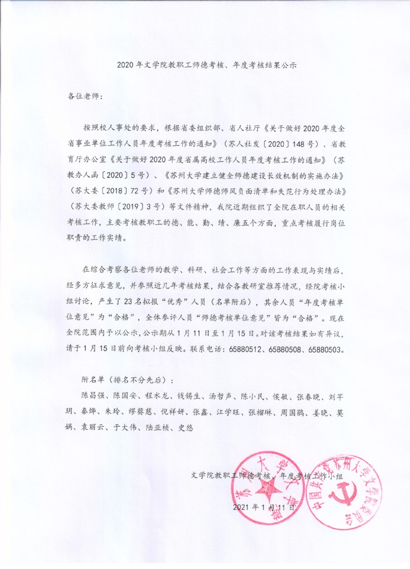 2020黄色网 教职工师德考核、年度考核结果公示