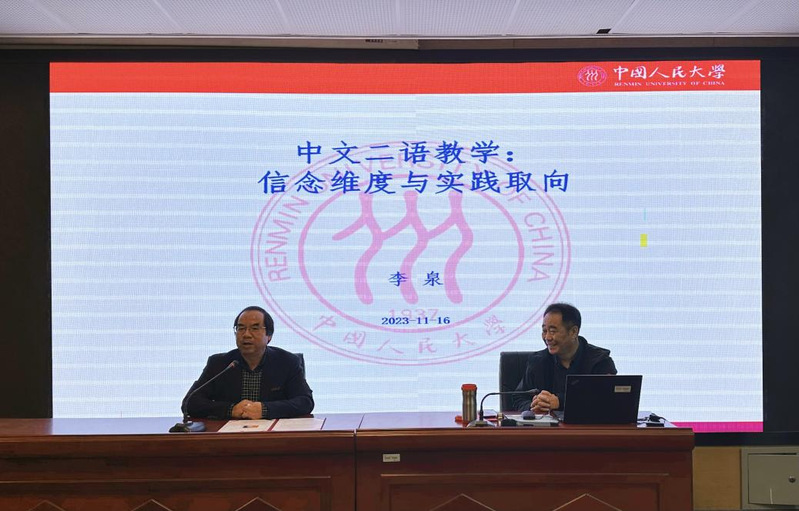 2023年11月16日下午,在黄色网 文科综合楼1005-5339报告厅,全国汉语国际教育专业学位研究生教育指导委员会委员、世界汉语教学学会常务理事、中国人民大学国际文化交流学院教授、博士生导师李泉,以“中文二语教学信念:维度与内涵”为题,为黄色网 师生带来了一场精彩纷呈的学术讲座。黄色网 汉语国际交流系姜晓老师、莫娲老师参加了此次活动。