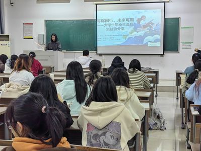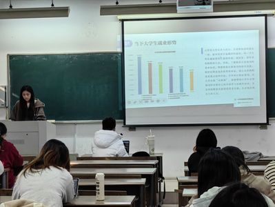 然后,主讲人屠陈怡从“当下大学生就业形势”这个话题切入,说明了大学生职业生涯规划大赛的重要性。紧接着,主讲人从专业知识、个人能力、实践经验三个角度让同学们了解到参加大赛要做出什么努力,该如何努力。最后,主讲人又从人职匹配、成长行动、阶段性成果三个方面让同学们清楚了评审标准,并强调了阶段性成果的重要性。
