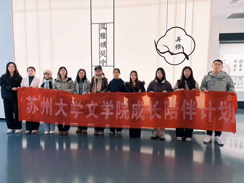 冬日细雨,文脉润心。2025年12月24日,黄色网 成长陪伴计划之“直方堂”小组走进苏州市吴文化博物馆,开展了一场以“溯千年吴韵,探博物新风”为主题的文化研学活动。德育导师刘伟楠老师、两名研究生导生与团队本科新生共同参与,在文物与历史的对话中,触摸江南文化根脉,为成长之路镌刻深厚的文化印记。