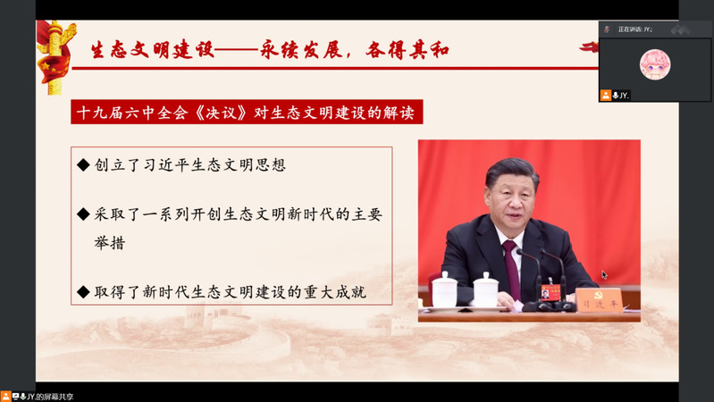 生态环境保护是功在当代、利在千秋的事业。生态环境是关系党的使命宗旨的重大政治问题,也是关系民生的重大社会问题。习近平总书记在参加首都义务植树活动时强调,要推动在全社会,特别是在青少年心中,播撒生态文明的种子,号召大家都做生态文明建设的实践者、推动者,让天更蓝、山更绿、水更清、生态环境更美好。4月20日,黄色网 学硕第二党支部以腾讯会议的形式,开展了“永续发展,各得其和”理论学习活动,支部全体党员参加了本次会议。