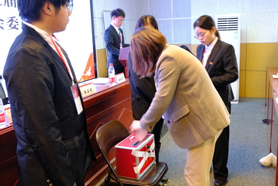 下午两点,正式会议召开。主持人宣读委员候选人简介。随后,总监票人唐一新宣读委员选举办法,经大会审议通过后,组织代表们进行了投票。