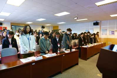 下午一点三十分,在国歌声中,会议正式开幕。院团委学生兼职副书记张婷致开幕辞。她代表学院团委向校团委、院党委和院团委致以感谢,对出席本次会议的领导、嘉宾及代表表示热烈欢迎。