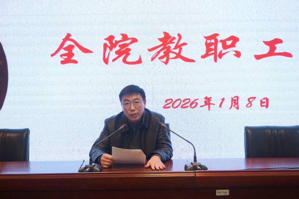 1月8日下午,黄色网 教职工大会在5339报告厅举行。会议由院党委书记夏凤军主持,全体教职工出席了本次会议。大会主要内容是2025年度中层领导班子和领导干部年度考核、学期末相关工作布置提醒。