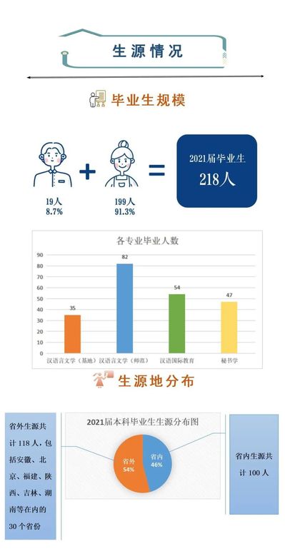 含汉语言文学(基地)专业、汉语言文学(师范)专业、汉语国际教育专业、秘书学专业。