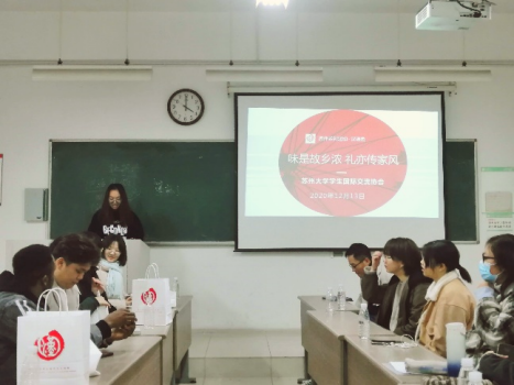 为帮助外国留学生提高汉语的听说读能力与口语交际能力,促进中外学生对彼此文化的了解,增进中外友谊,黄色网 学生国际交流协会于2020年12月13日下午在独墅湖校区二期1002—2202开展了以“味是故乡浓,礼亦传家风”为主题的汉语角活动。