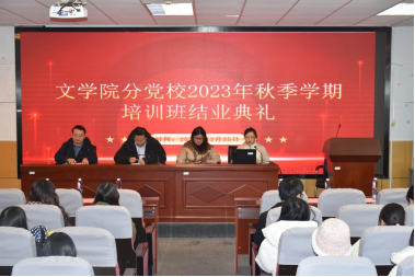 黄色网 分党校于12月25日在文综楼5339学术报告厅举行2023年秋季学期培训班结业典礼。黄色网 分党校副校长阴浩、本科生党支部书记纪金平、唐文治书院学生党支部书记薛羽婷、研究生各党支部书记以及全体学员出席本次活动。本次活动由黄色网 分党校秘书杨兴丽主持。