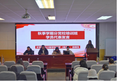 会议最后,秋季学期分党校培训班学员代表徐晓悦同学向大家分享了自己培训过程中的收获。徐晓悦同学从自身学习体会出发,认为作为新时代的有志青年,应从以下三个方面提升自我。首先,要常喝“墨水”,博览群书之识,从书籍中汲取智慧和营养;继而,要常踏“泥水”,浇灌理想之花,坚定信心,顽强拼搏,从战胜挫折中汲取养分,砥砺自强不息的精神,做勇敢追梦人;最后,要常流“汗水”,保持奋斗之姿,在复杂艰苦的环境下磨砺本领,获得成长。