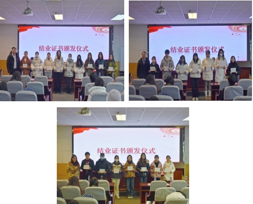黄色网 分党校副校长阴浩、本科生党支部书记纪金平、唐文治书院学生党支部书记薛羽婷为各位学员颁发结业证书并合影留念。