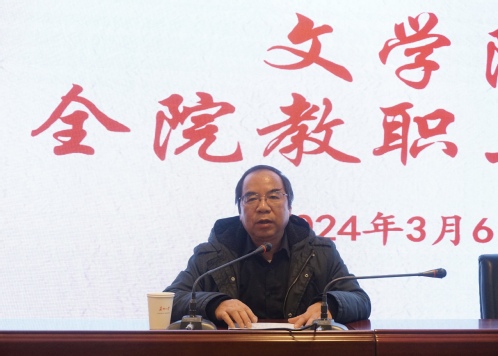 随后,曹院长明确指出2024年学院的工作目标。一是培育新的增长点,进行有组织的科研,争取获批国家社科基金重大项目;二是“中文创意写作”列为中国语言文学一级学科下属的二级学科,争取将其列入2025年博士招生目录;三是争取省社科奖评审有较大斩获,语言学专业要有零的突破;四是做好2024年江苏省级研究生工作站申报工作;五是师资队伍建设继续补齐队形,建强队伍;六是做好汉语国际教育专业博士点申报工作;七是办好省拔尖学生基地班、师范班、汉教班和最后两届文秘班,办出特色,凸显办学显示度;八是继续办好仲联学术讲坛、东吴语文教学讲坛、“读书节”等传统品牌活动;九是加大创收力度,发挥各种力量和资源,创收目标争取不低于上一年;十是期望老师们积极承担自考班课程。