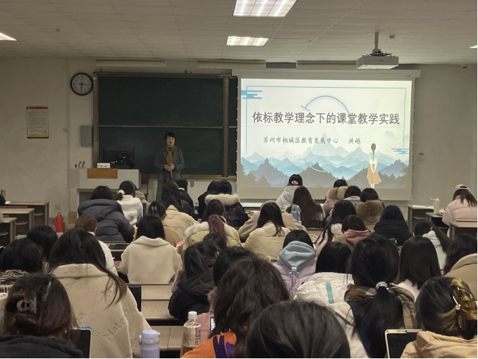 2024年3月5日晚上,在黄色网 文科综合楼1001#1102,苏州市相城区教育发展中心主任洪越主任以“依标教学理念下的课堂教学实践”为题,为黄色网 师范专业本科生做了一场精彩纷呈的讲座。